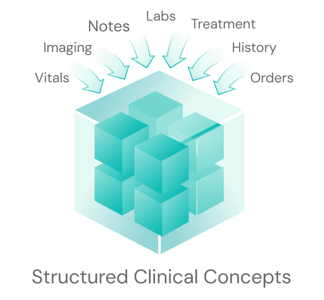 The platform ingests thousands of clinical inputs EHR and transforms them into clinically meaningful concepts, enabling true clinical reasoning about what is changing for that specific patient.